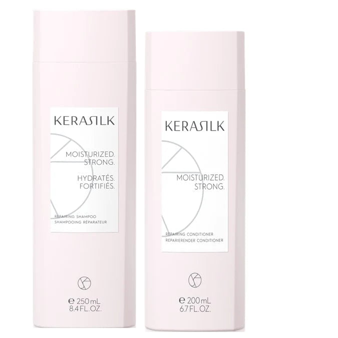 Kerasilk Repairing Shampoo gently cleanses and repairs damaged hair, while the Kerasilk Repairing Conditioner deeply moisturizes and detangles, promoting smoothness and manageability. Together, they provide intense nourishment, restore elasticity, and protect against future damage.